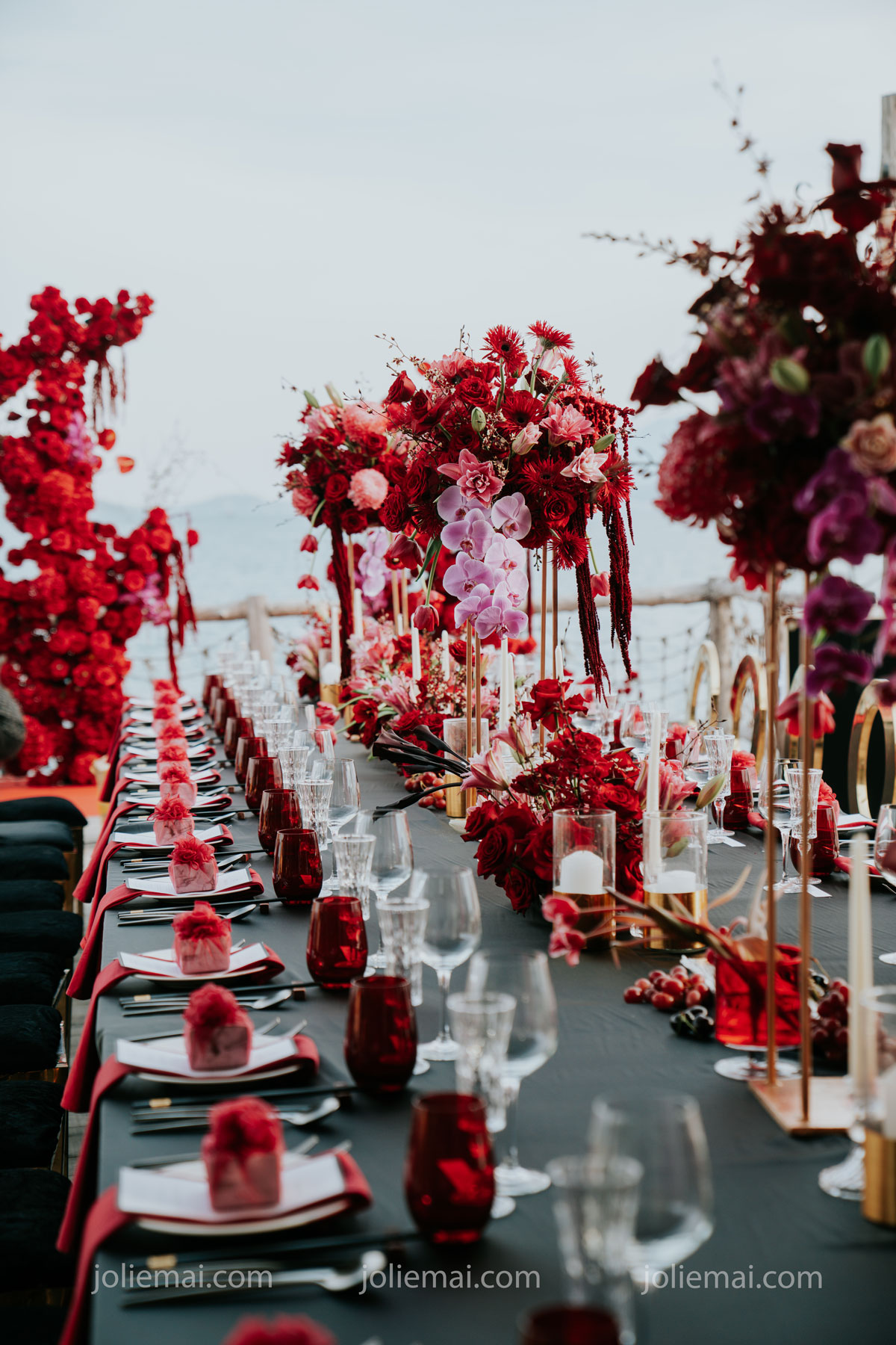 Nếu bạn muốn một bữa tiệc ấm cúng với ít khách mời, villa riêng tư sẽ là lựa chọn hoàn hảo. Jolie Mai sẽ thiết kế concept hoa, ánh sáng và bàn tiệc để biến villa thành “ngôi nhà của tình yêu”.