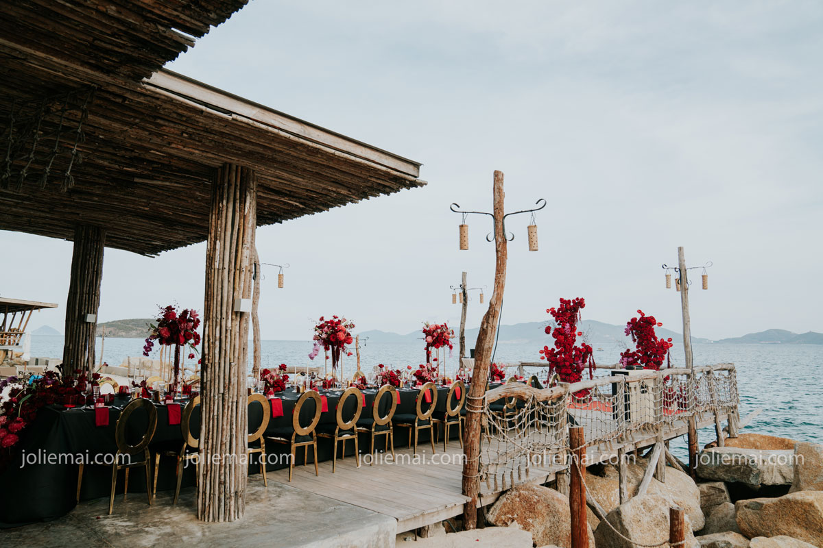 Không gì lãng mạn bằng việc tổ chức kỷ niệm ngày cưới bãi biển Nha Trang, nơi sóng biển, ánh hoàng hôn và cát trắng tạo nên bức tranh hoàn hảo. Jolie Mai thường thiết kế concept: